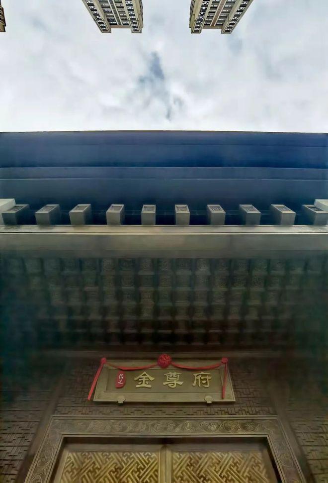 还有柚木打造的入户大门,以前是皇家专用,故宫大门用的就是这柚木;纯铜包边,汉白玉的门钹;门上雅致的纯铜匾额,亮晃晃三个大字“金尊府”;寓意十全十美的10枚门楣,地上铺的手工地雕……