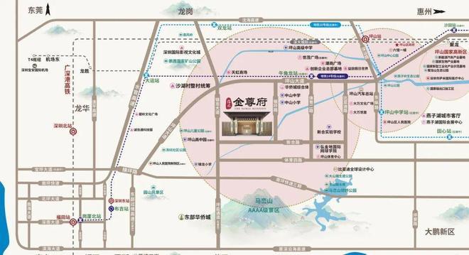 信达·金尊府恰好坐落于坪山中心的核心商住区内,其商圈、商务中心自成一体,区域内各项配套齐聚: