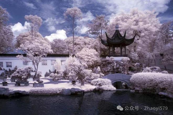 间接借景是一种借助水面、镜面映射与反射物体形象的构影方式。由于静止的水面能够反射物体的形象而产生倒影,镜面或光亮的反射性材料能映射出相对空间的景物,所以,这种景物借构方式能使景物视感格外深远有助于丰富自身表象及四周的景色,构成绚丽动人的景观。
